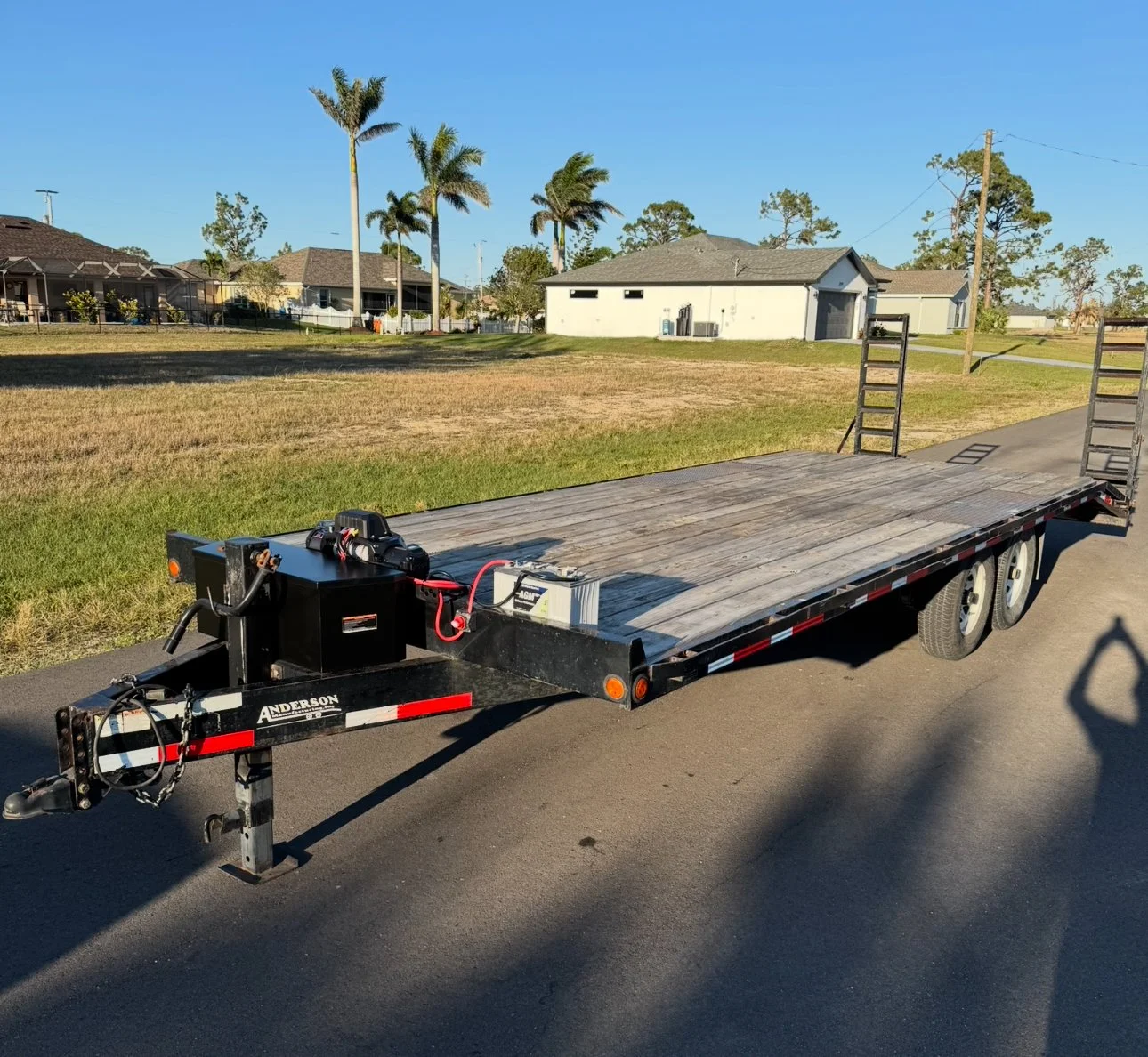25FT DECKOVER $160 A DAY TRAILER FEATURES5FT Dove Tail with Ramps12K LB Winch with Remote5 Straps and 5 Axle StrapsStorage BoxBumper PullDual 7K LB AxlesAdjustable 2 5/16 HitchCALL/TEXT TO RENT 239-365-9898